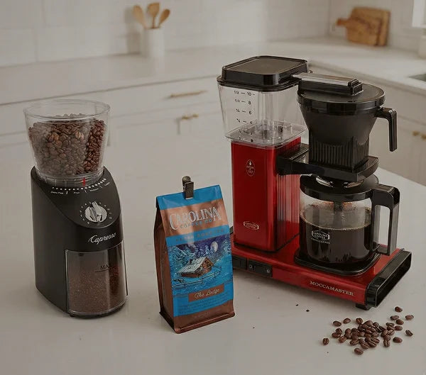 Every order enters you to win a $525 brewing setup, including a Moccamaster, Capresso grinder, and 2 lbs of Carolina Coffee!